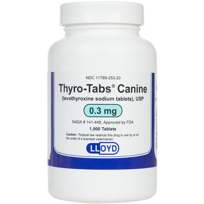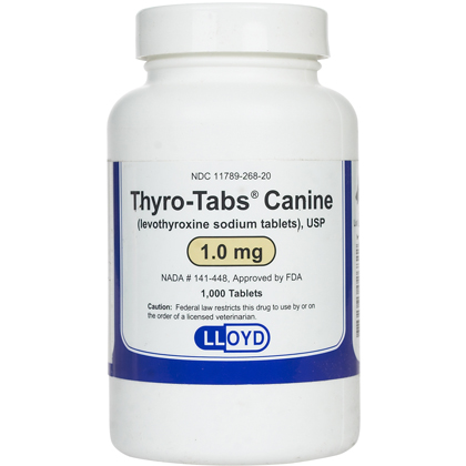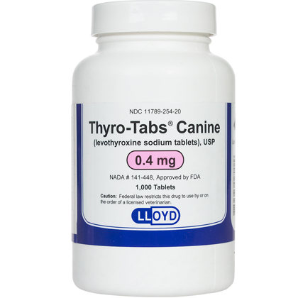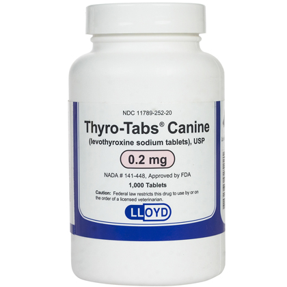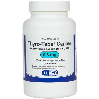 Levothyroxine Sodium Tablets (Thyro-Tabs) is the active ingredient found in Thyro-Tabs, Soloxine, and Levocrine. Levothyroxine Sodium Tablets (Thyro-Tabs) is a medication prescribed for dogs and cats to treat conditions associated with hypothyroidism. This medication can be used in cats in those instances where the thyroid gland has been surgically removed. It provides thyroid replacement therapy to pets with hypothyroidism or other thyroid conditions due to low circulating thyroid hormone. Thyro-Tabs requires a prescription and is sold per tablet.